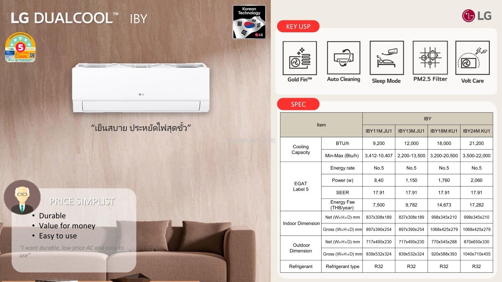 หมวดหมู่: IBY 9,000 - 21,000 BTU, LG, แบบติดผนัง อินเวอร์เตอร์lg