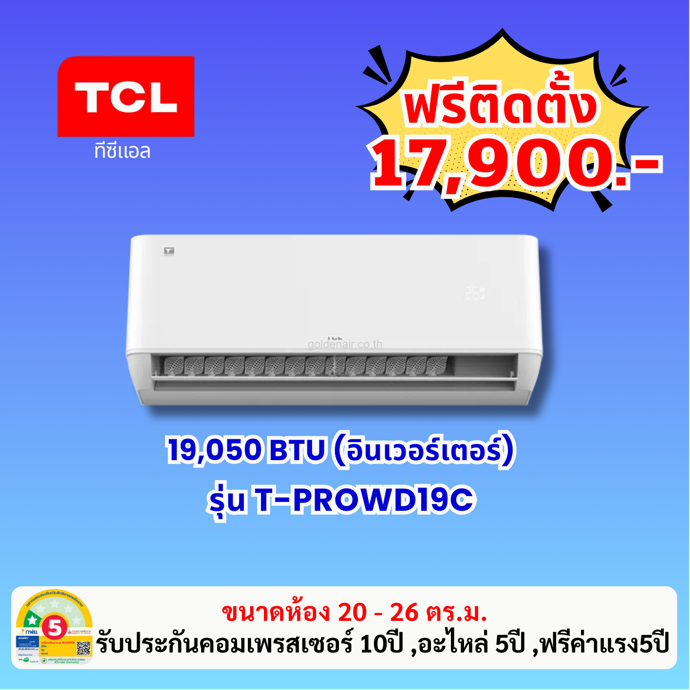 แอร์ทีซีแอล อินเวอร์เตอร์ รุ่น T-PROWD19C ขนาด 19050 BTU