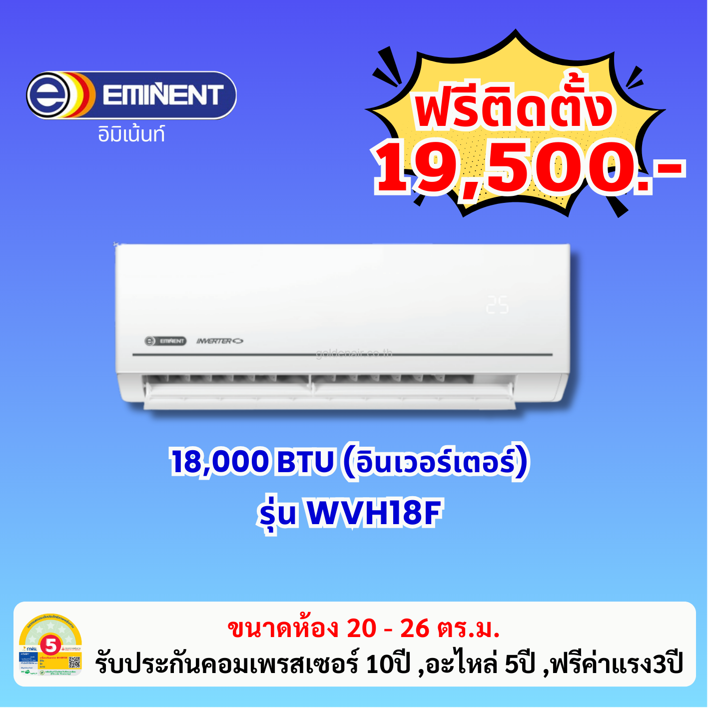 แอร์อีมิแน้นท์ อินเวอร์เตอร์ รุ่น WVH18F ขนาด 18000 BTU